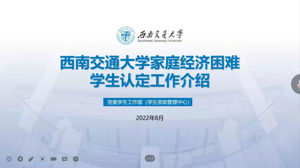 2022年8月30日19:00,由于近期疫情防控形势严峻,雷火网页版于线上举行了2022级新生资助专题讲座。本次讲座针对新生关于奖助学金、贫困认定、勤工助学等事务进行详细讲解。参与本次会议的人员有学生资助中心米艳老师、辅导员邓慧心老师、罗晗葳老师、李曦老师,以及雷火网页版2022级新生。
