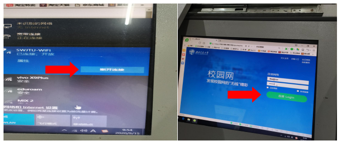 1.任课教师打开教室电脑后,可点击电脑右下角选择链接“swjtu-wifi”,链接成功后打开桌面浏览器,输入教育网账号和密码。