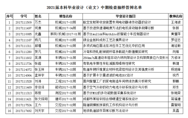 为深入推进2021届本科生毕业设计(论文)工作,提升毕业设计(论文)质量,按照学校工作通知,学院同步学校开展2021届本科生毕业设计(论文)中期检查工作,采取学院抽查、系所普查的方式进行,学院抽查具体安排如下: